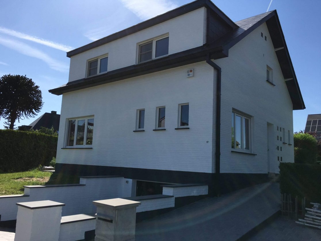 Couverture en ardoises artificielles, dépassants en Cedral Board et peinture façades